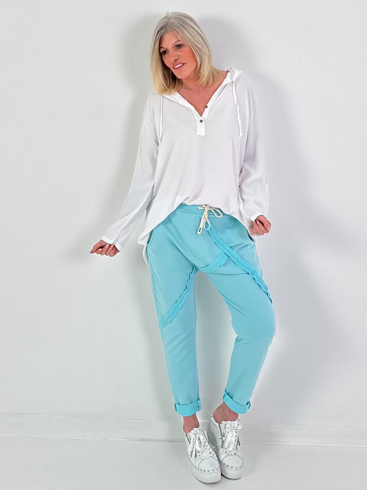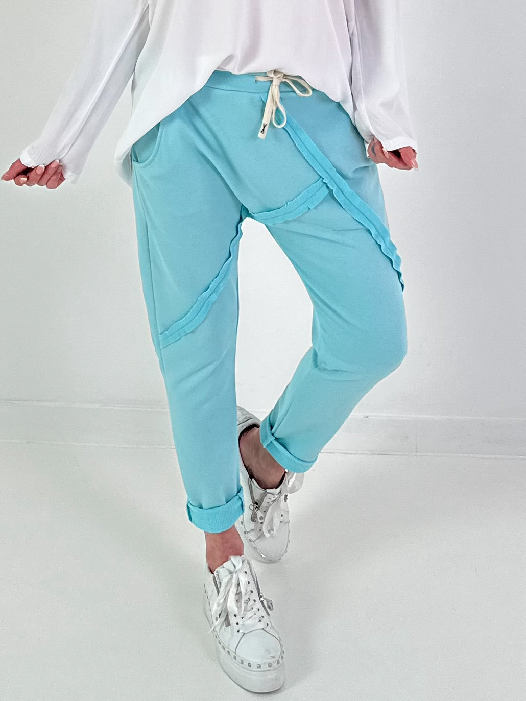Baggy Hose mit Linksnähten - türkis