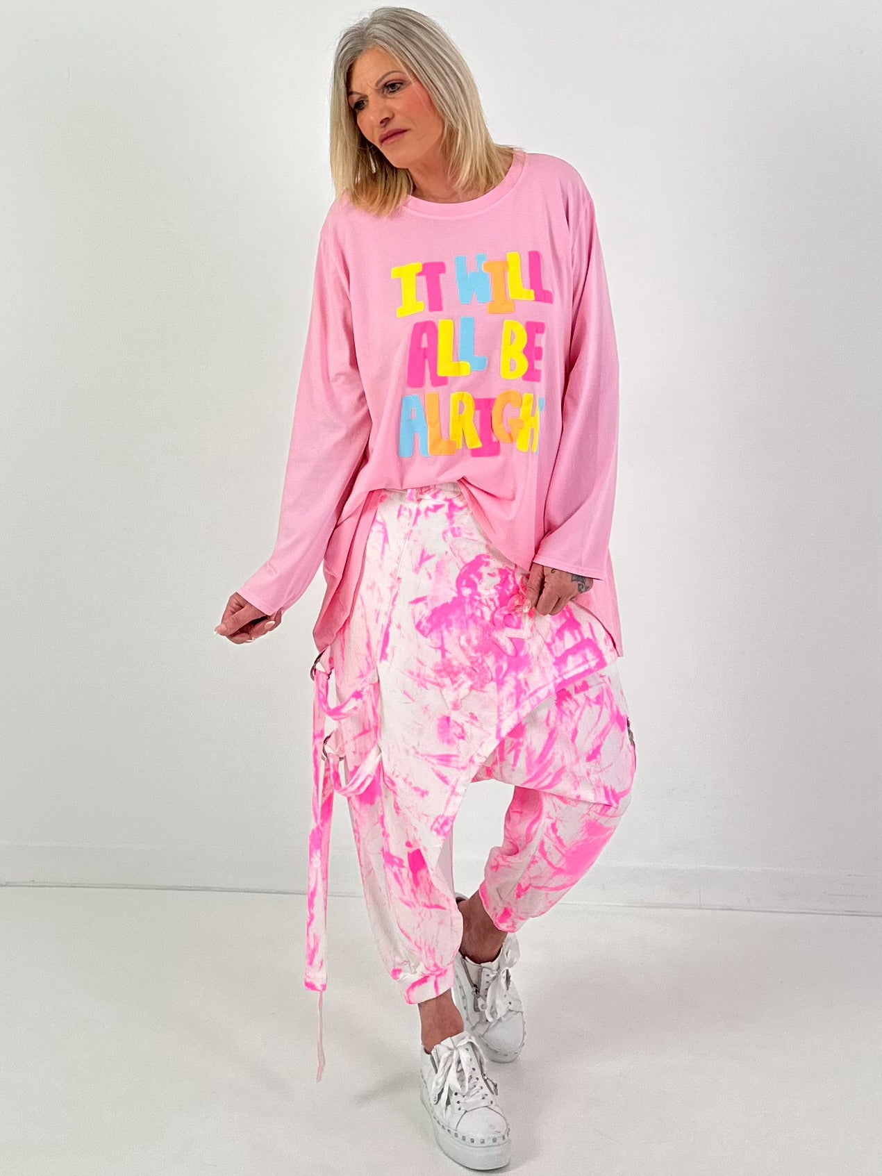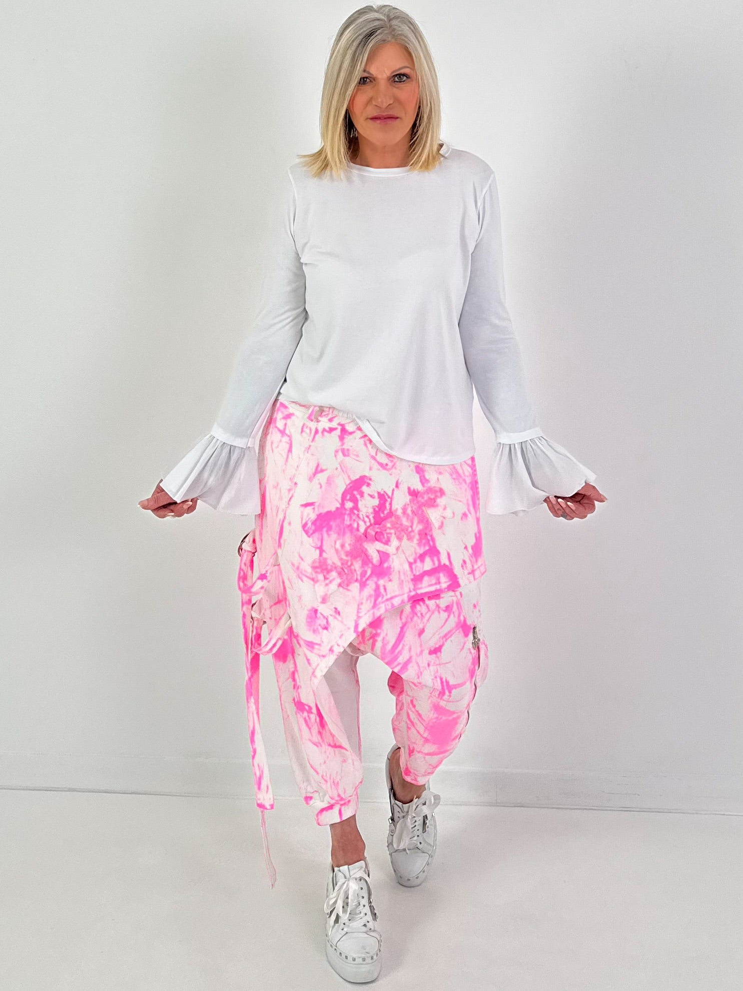 Batik-Baggy Amour - weiss-neonpink