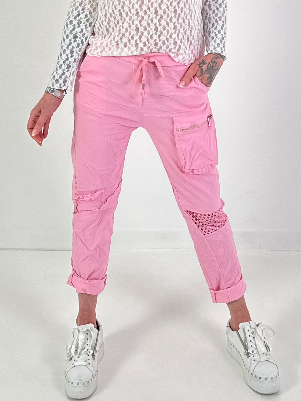 Hose mit Netzeinsatz - rosa