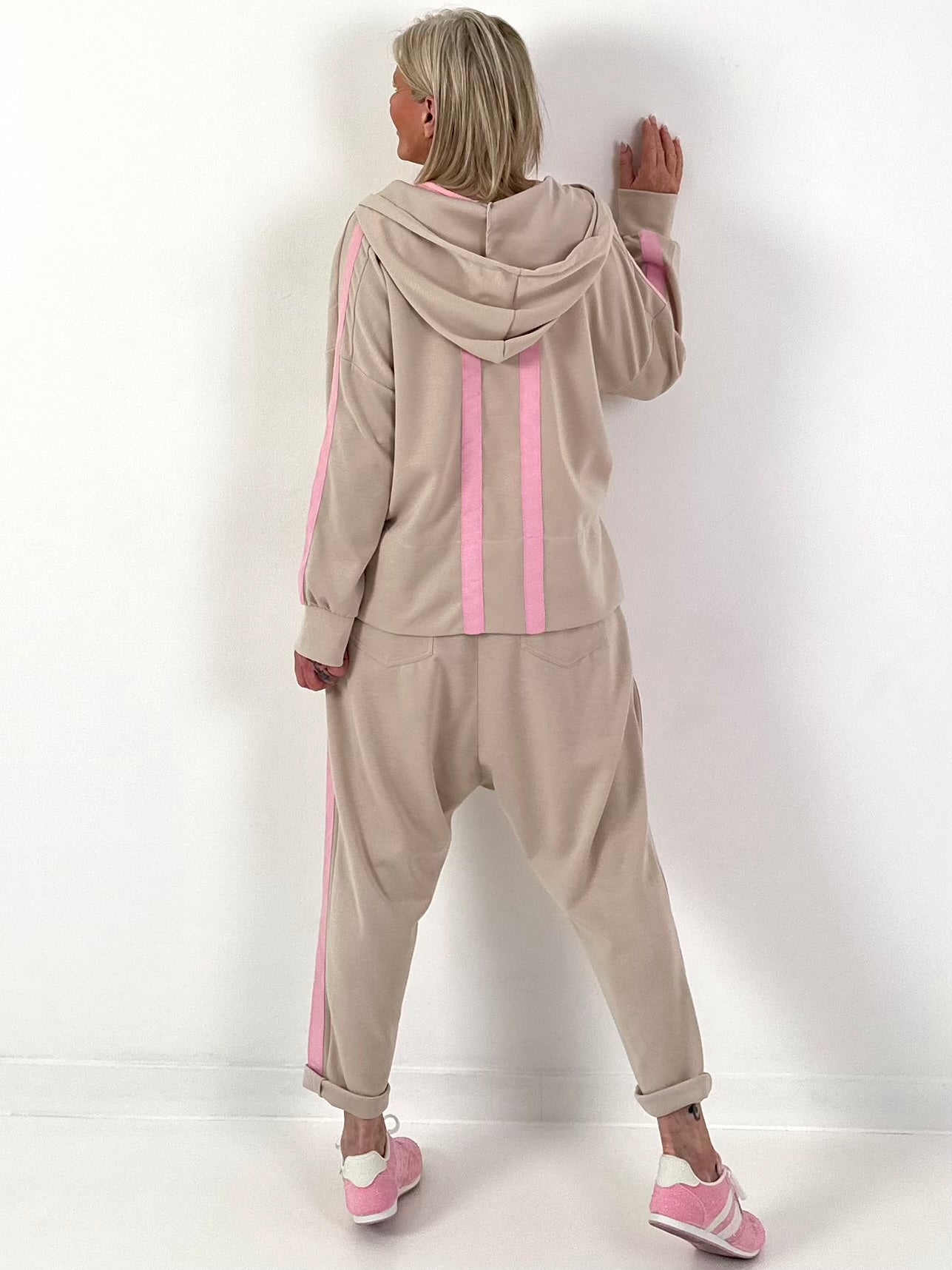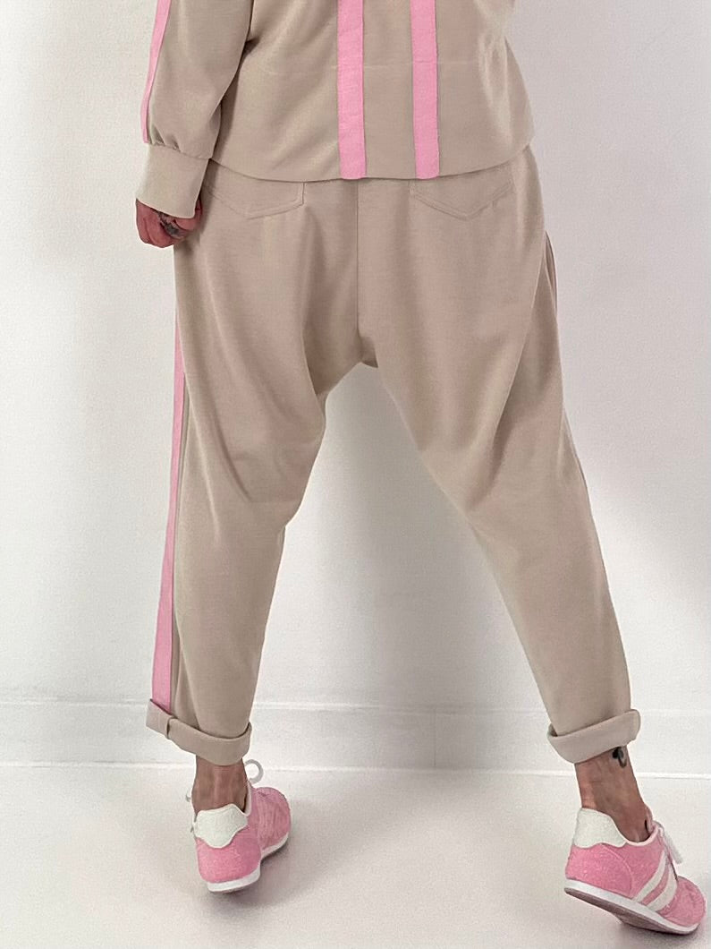 Sweat Baggy mit Streifen - beige