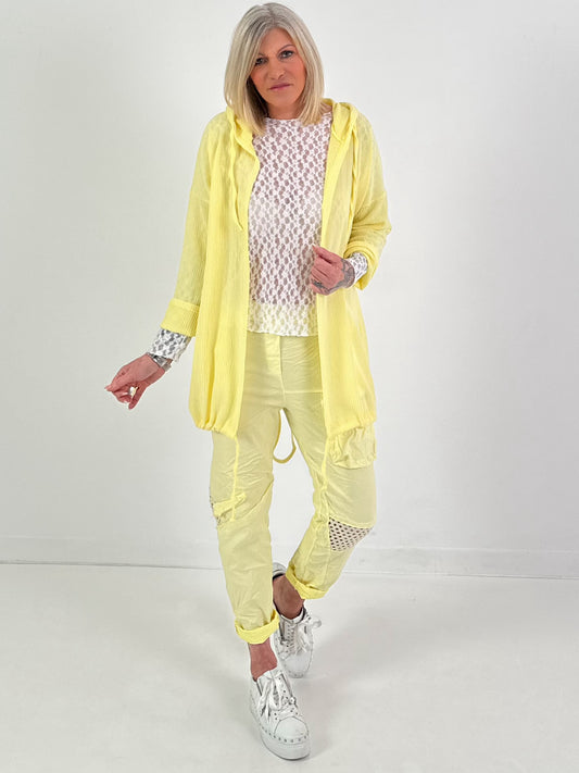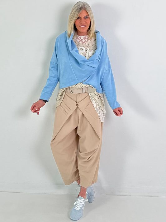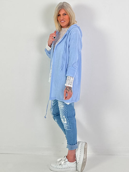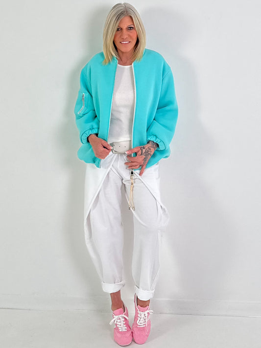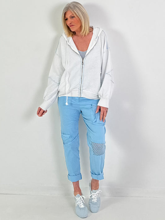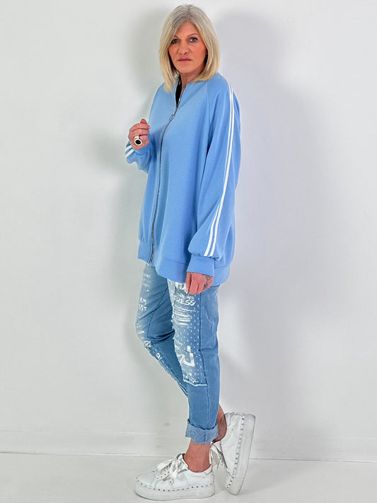 Sweatjacke mit Kontrastnähten - weiss-hellblau