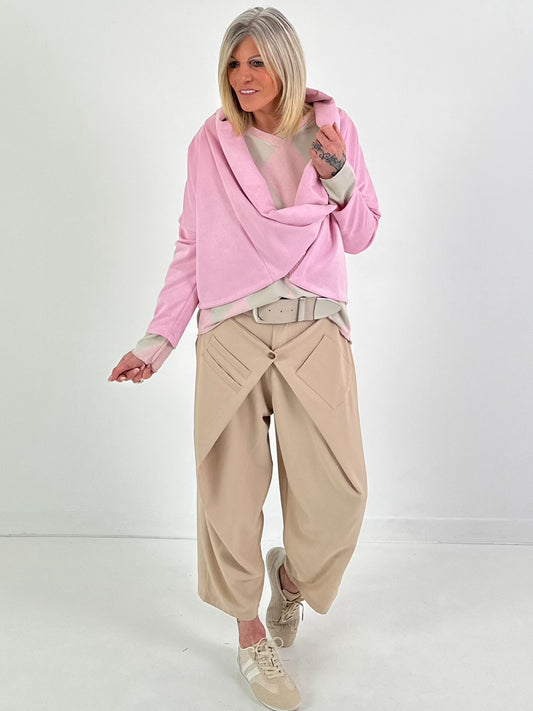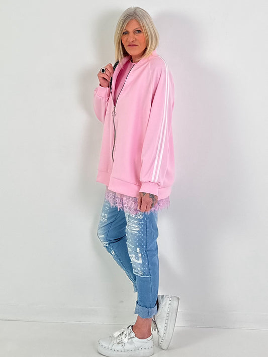 Sweatjacke mit Kontrastnähten - rosa-hellblau