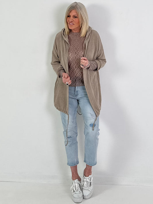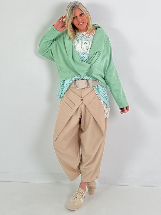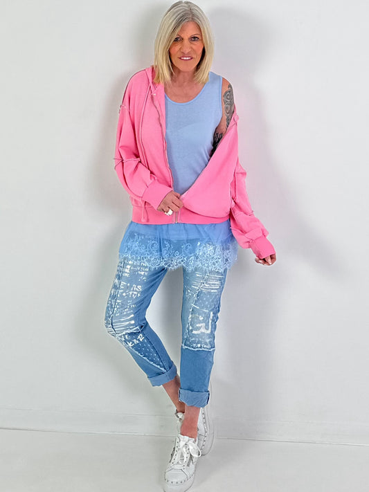 Sweatjacke mit Kontrastnähten - hellblau-pink