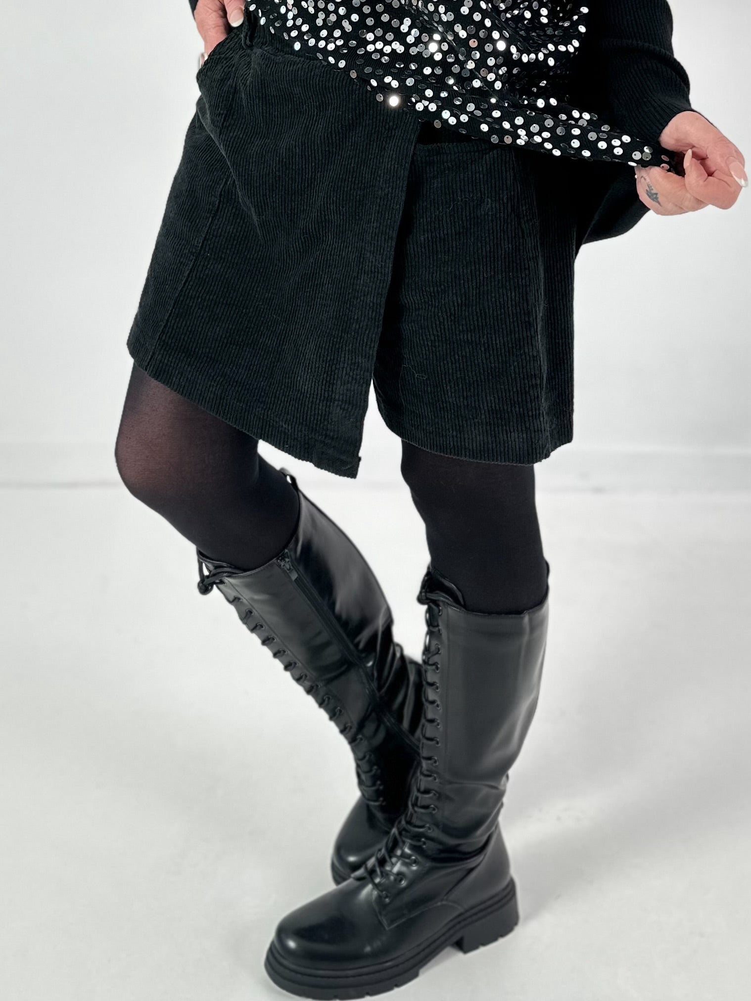 Cordshorts mit raffinierter Rockoptik – bequem wie eine Hose, charmant wie ein Mini. Das vordere Overlay sorgt für die Rockillusion und fällt leicht asymmetrisch. Zwei Eingriffstaschen plus zwei Gesäßtaschen machen das Ganze alltagstauglich. Der elastische Bund gibt angenehmen Halt, ohne einzuengen. Weicher Cord und eine schmeichelnde Form eignen sich perfekt für unkomplizierte, stilvolle Looks.
