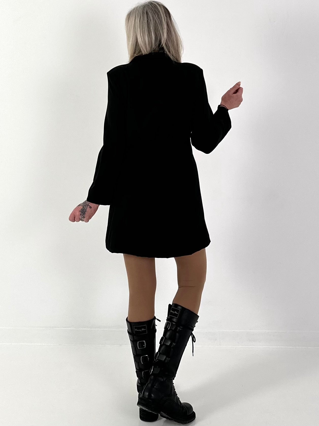 Dieser elegante Gehrock/Kleid überzeugt durch seinen femininen, modernen Look und ein angenehm leichtes, fließendes Tragegefühl. Der locker fallende Schnitt wird durch einen Bindegürtel auf Taillenhöhe ergänzt, mit dem sich die Silhouette individuell betonen lässt. Der klassische Reverskragen verleiht dem Design eine stilvolle, zeitlose Note, während die langen Ärmel den Gehrock/Kleid vielseitig kombinierbar machen – ob fürs Büro oder für einen lässigen Alltagslook. Auf der Rückseite sorgt eine elastische Raffnaht für einen optimalen Sitz und zusätzlichen Komfort. Die Länge macht das Modell zu einem vielseitigen Styling-Piece für jede Garderobe.