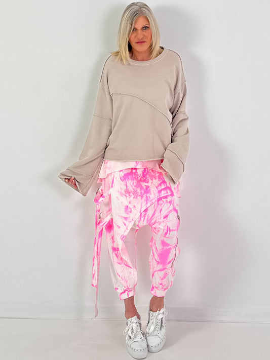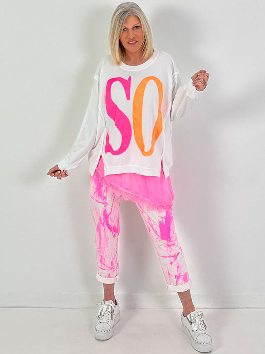 Batik-Baggy Amour - weiss-neonpink