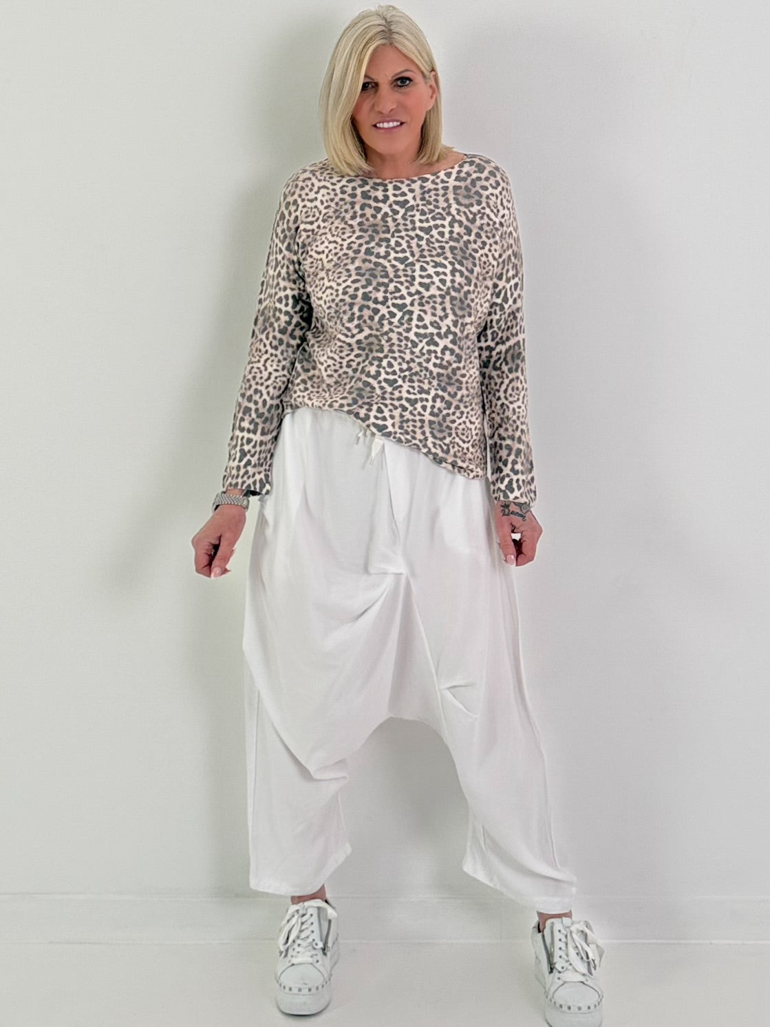 Feinstrick Pulli mit Leo Muster - beige-braun