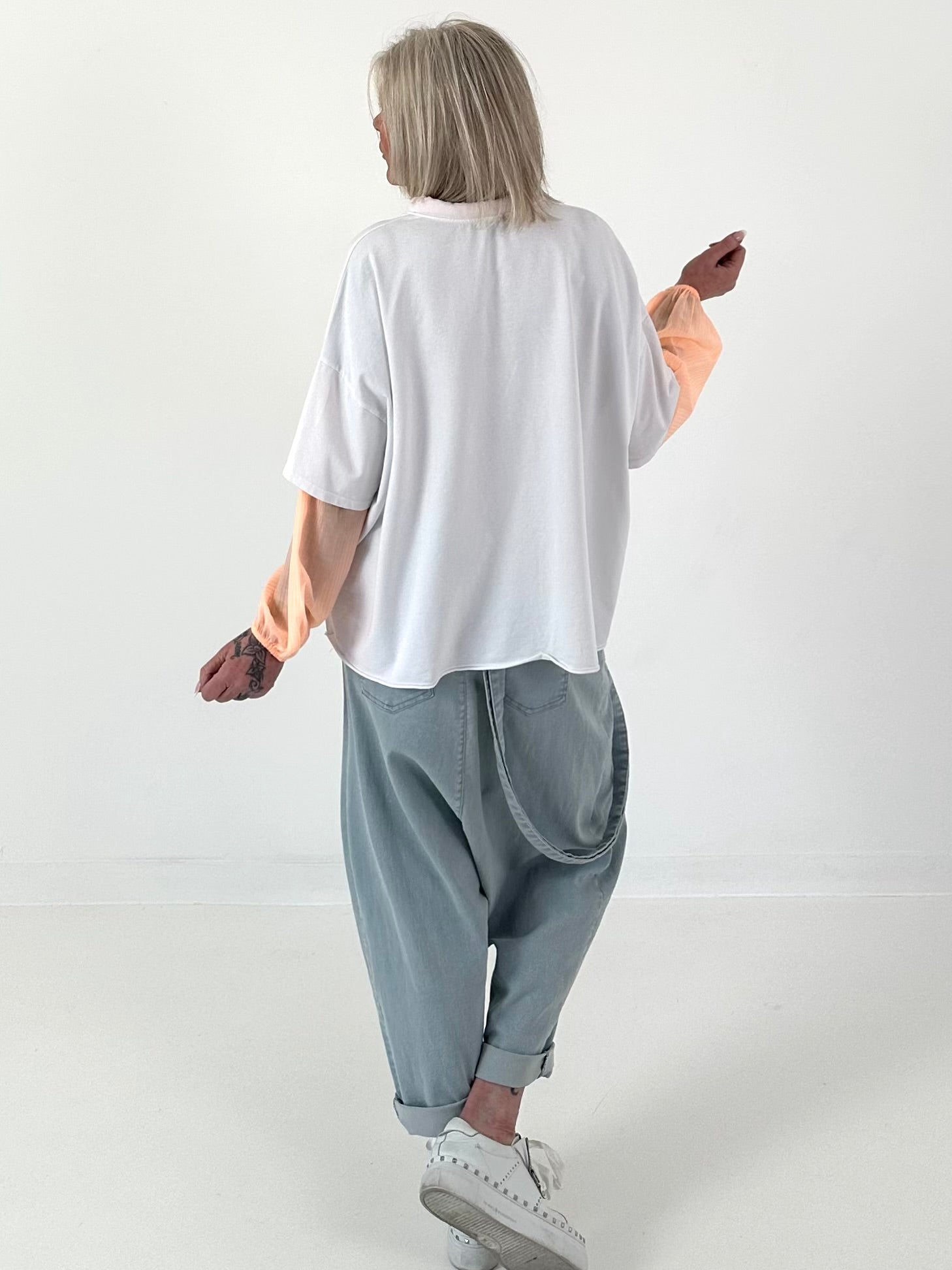Der lockere Schnitt verleiht dem Modell einen trendigen Charakter mit viel Bewegungsfreiheit. Ein stylisches Statement-Piece für frische Frühjahrs- und Sommerlooks – ideal kombinierbar mit Jeans, Stoffhosen oder Shorts für einen femininen Casual-Style mit besonderem Detail.