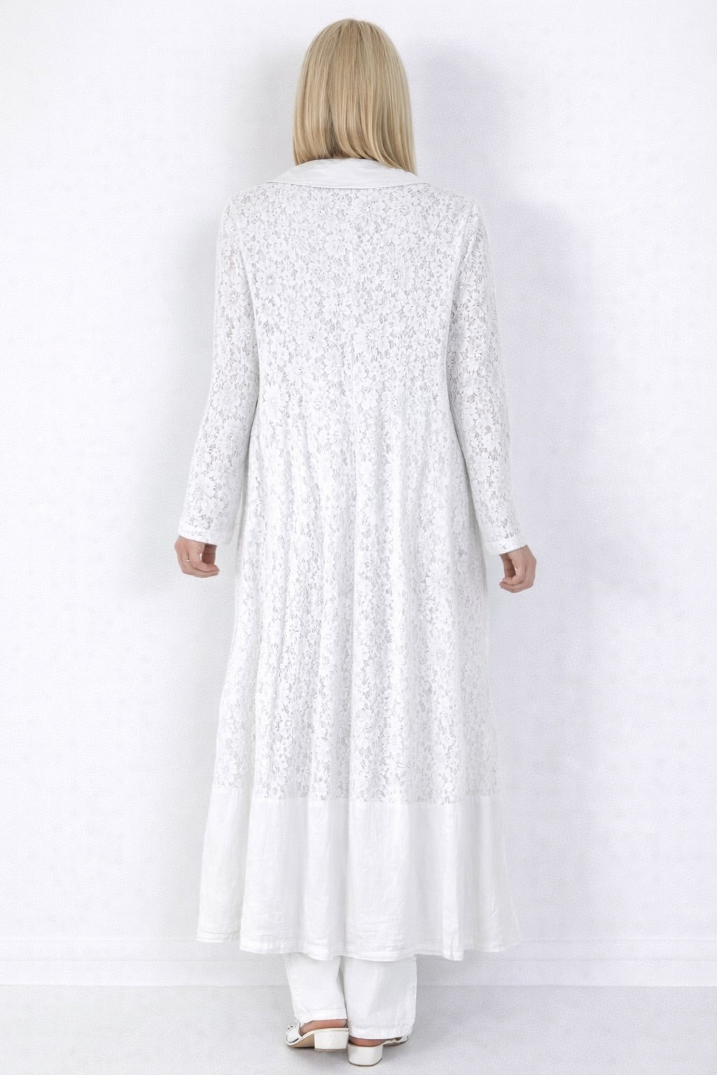 Leinenmantel mit Spitzenmuster - weiss
