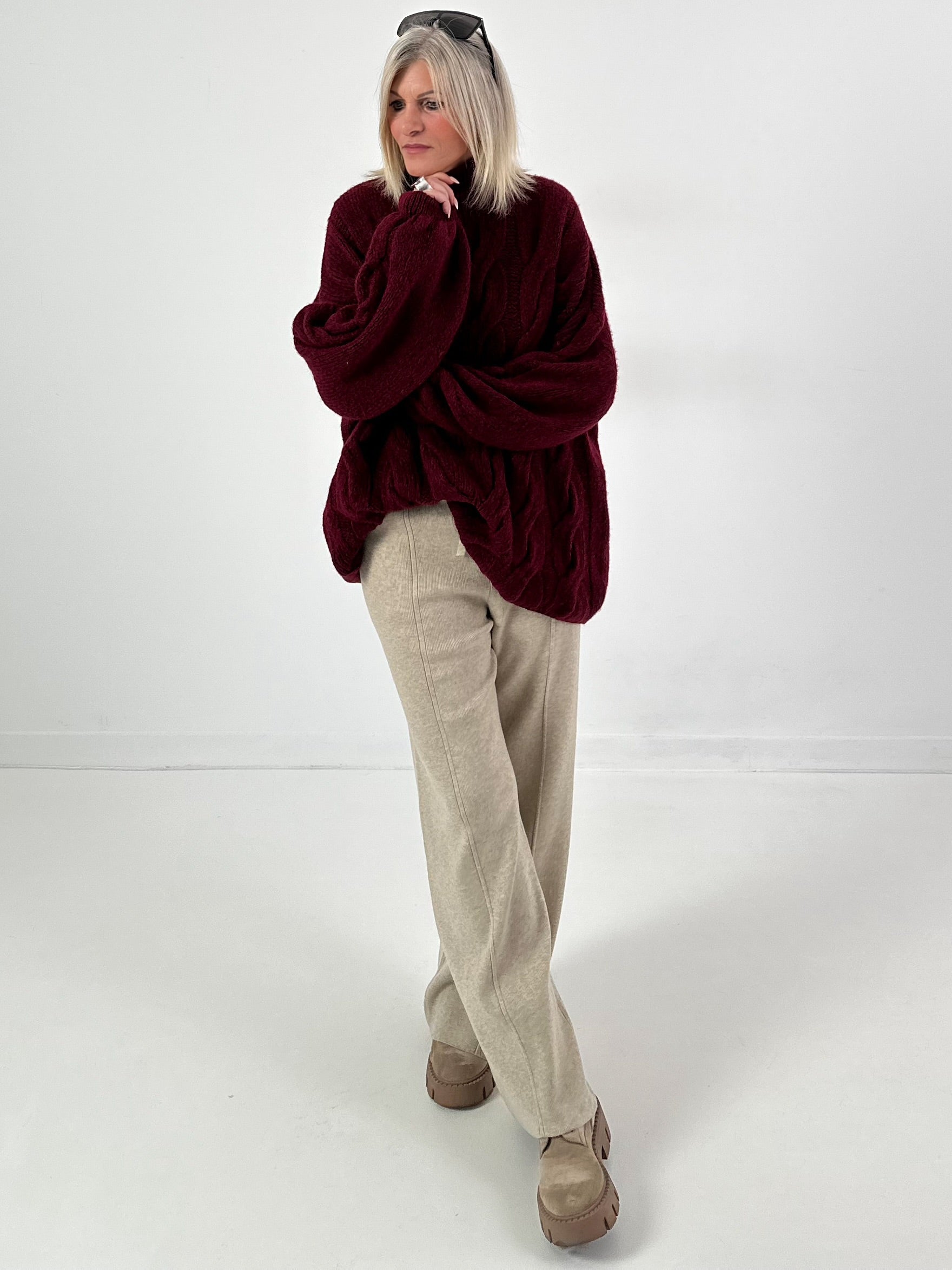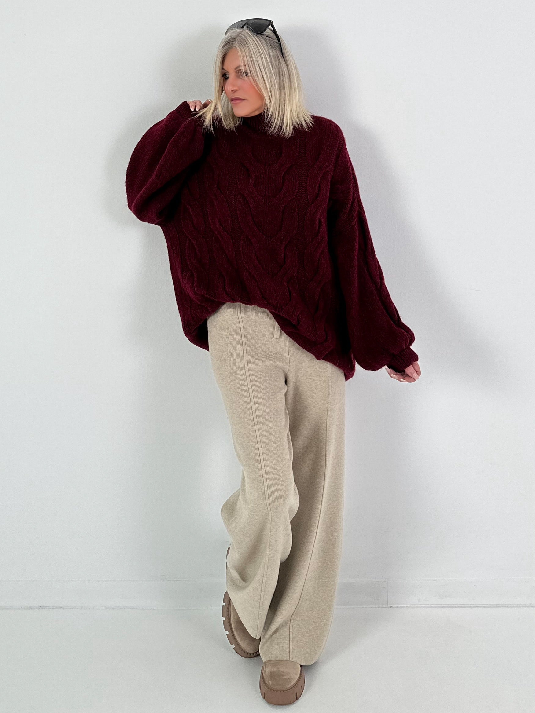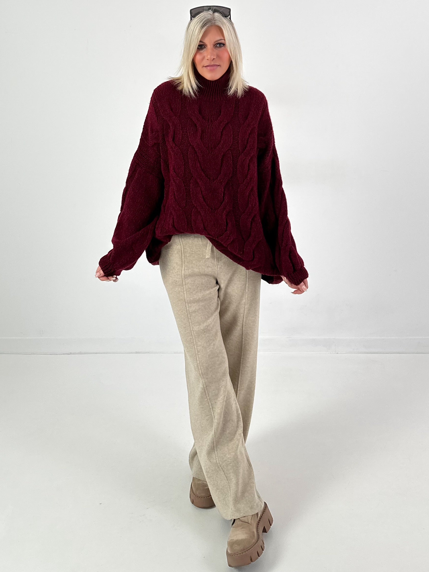 Lässiger Pullover mit Zopfmuster Modell "Pure Cable" - bordeaux