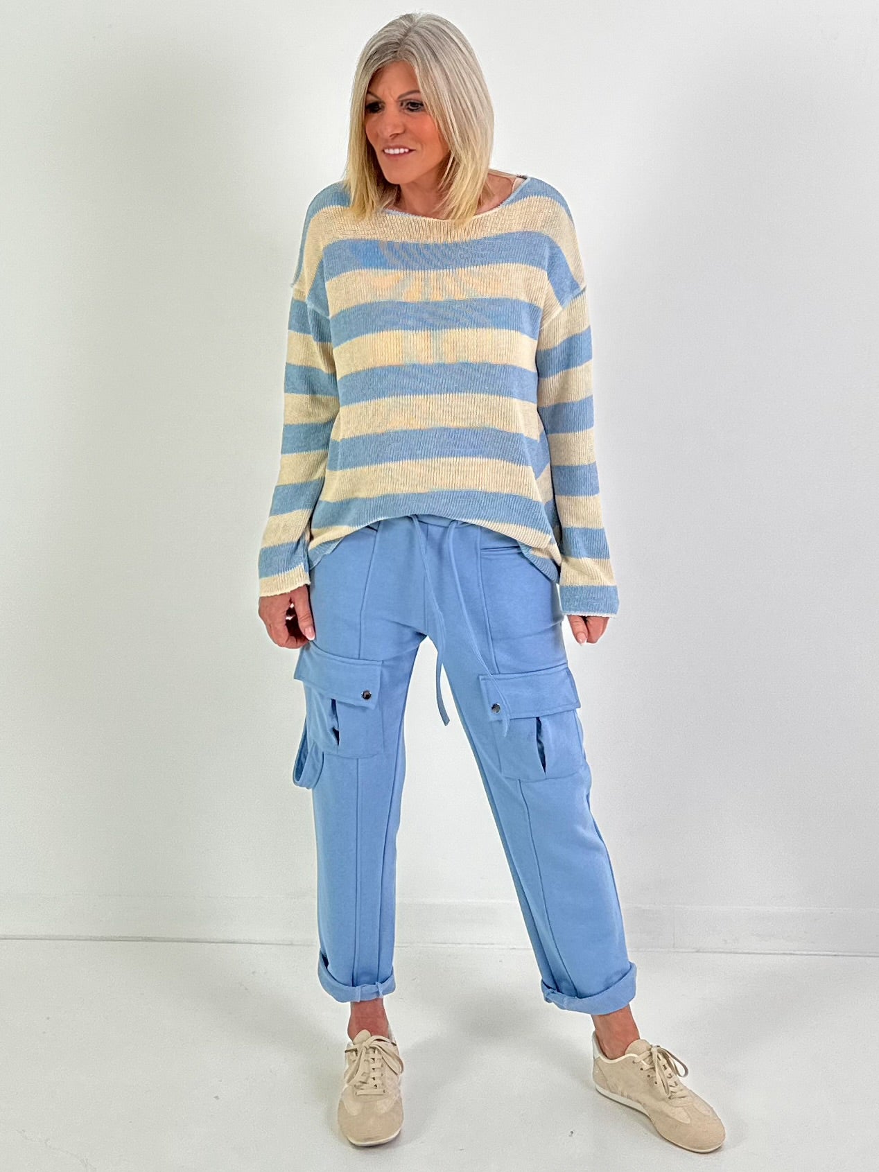 Pullover mit Streifen - beige-hellblau ( lieferbar ab 30.01.26)