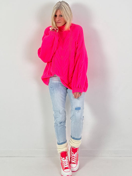 Lässiger Pullover mit Zopfmuster Modell "Pure Cable" - neonpink