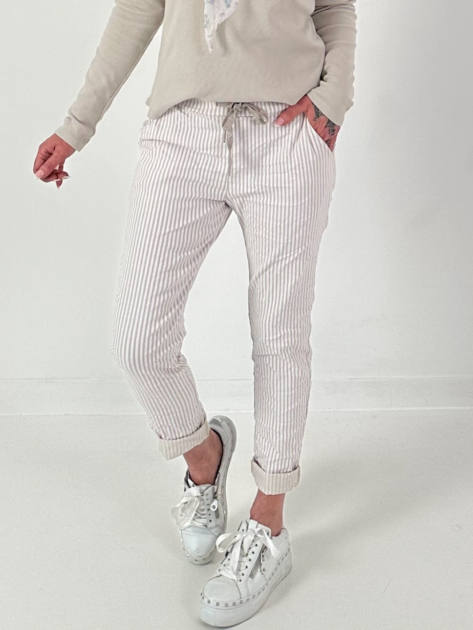 Hose gestreift - beige-weiss