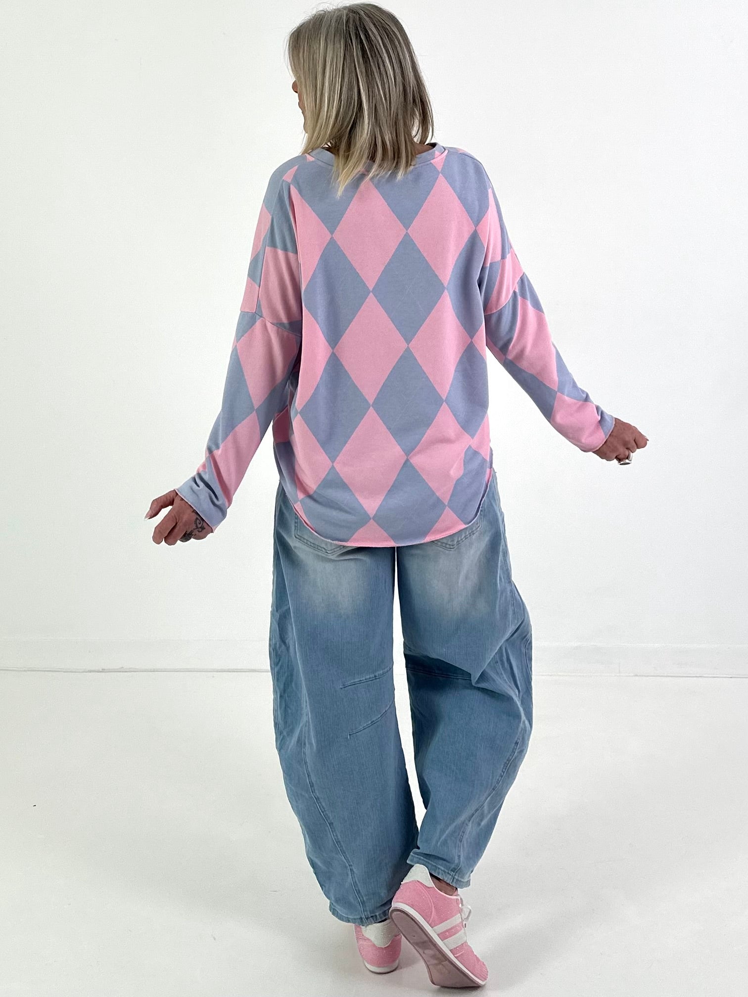 Sweater im Rautenmuster - candy-hellblau