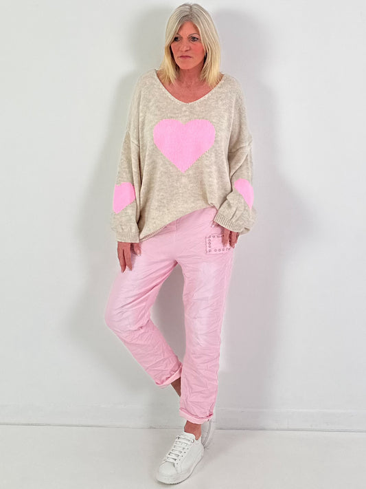 Oversized Pullover Modell "Heart Flair" - neonpink