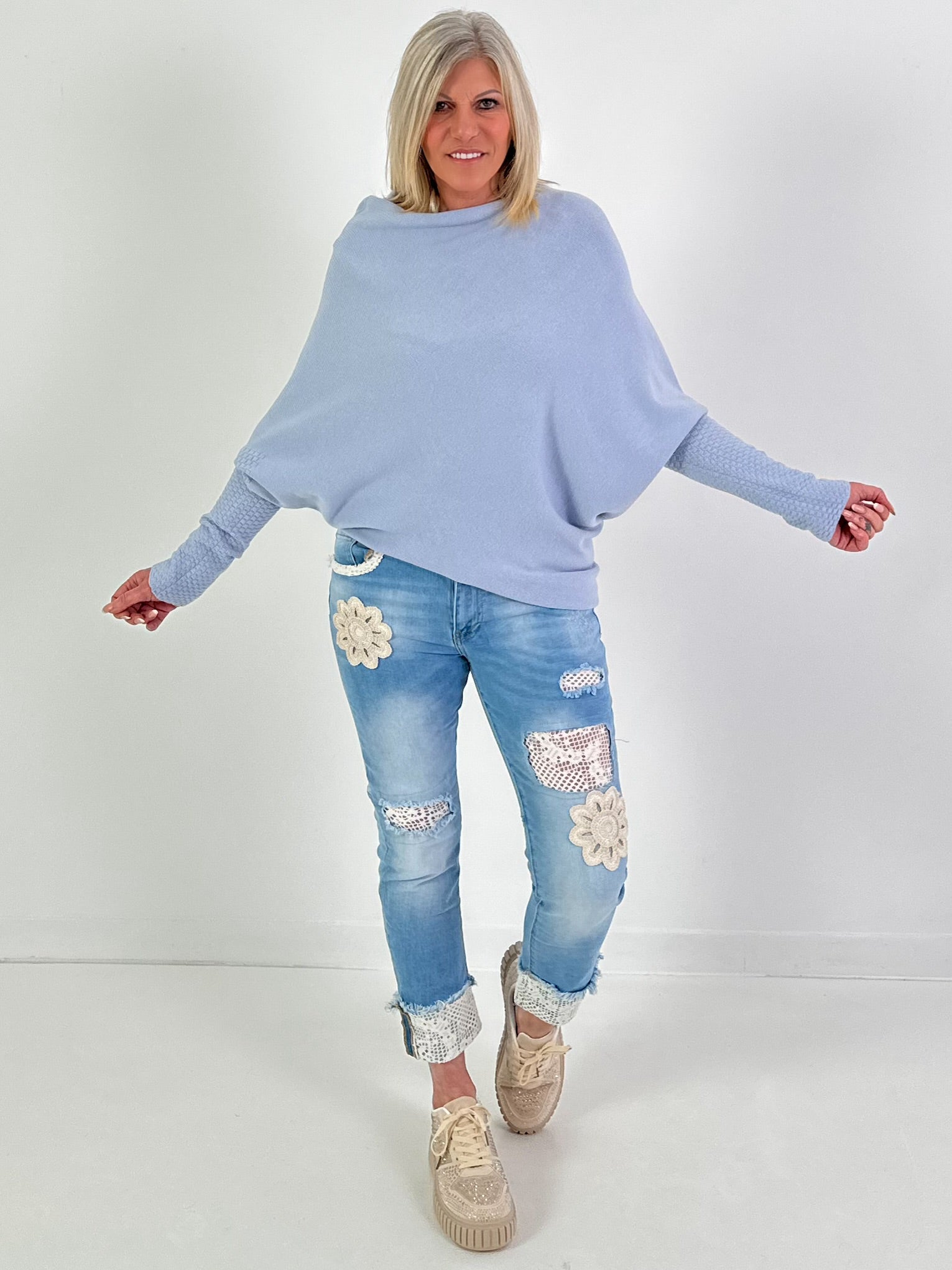 Pullover mit Stulpenärmeln Modell "Fluid Form" - hellblau