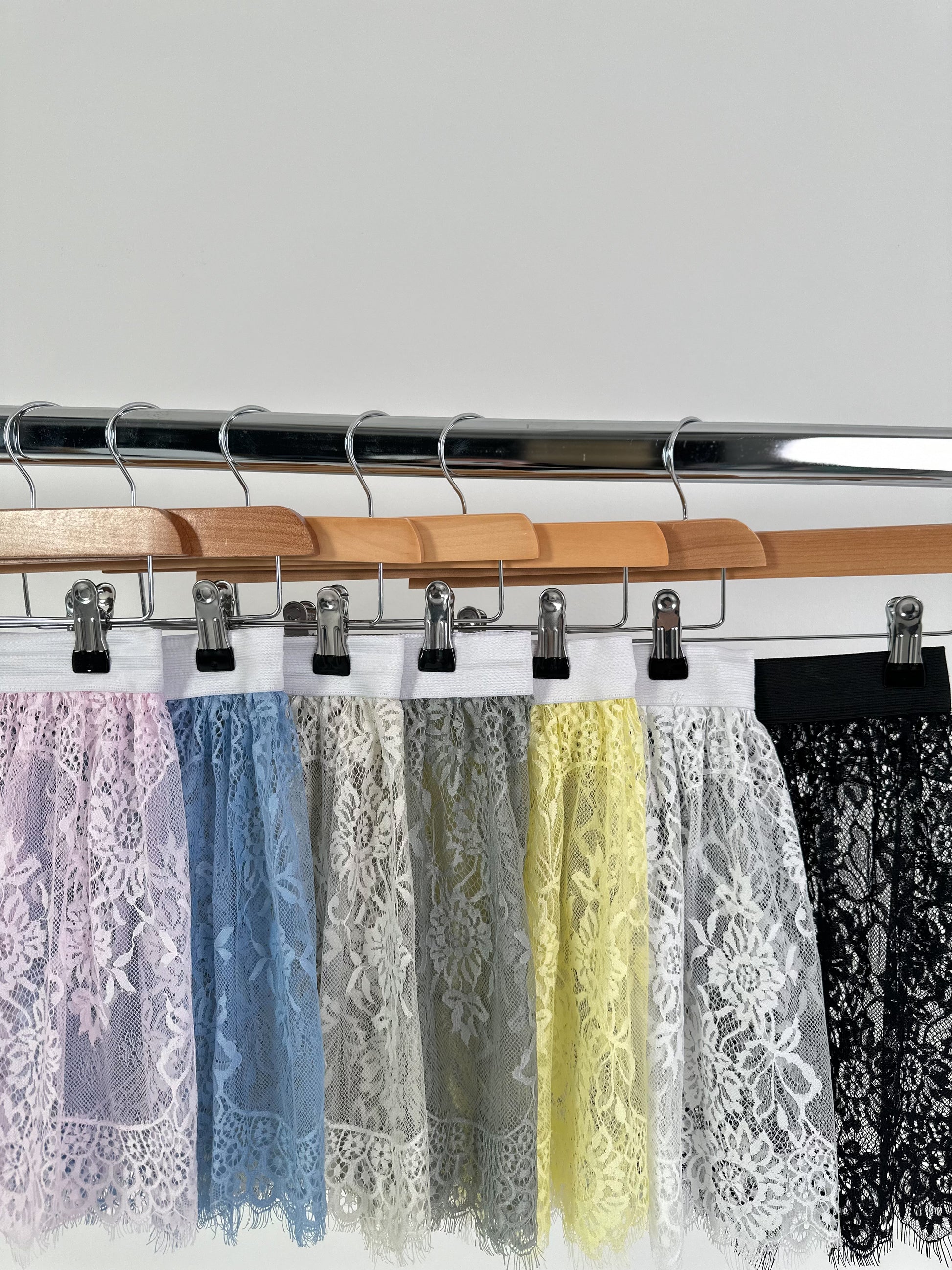 Der elastische Bund garantiert einen angenehmen Sitz und hohen Tragekomfort, während der leicht schwingende Schnitt eine schöne Silhouette zaubert. Die detailreiche Spitze mit floralem Muster und feinem Abschluss am Saum macht dieses Modell zu einem echten Hingucker.