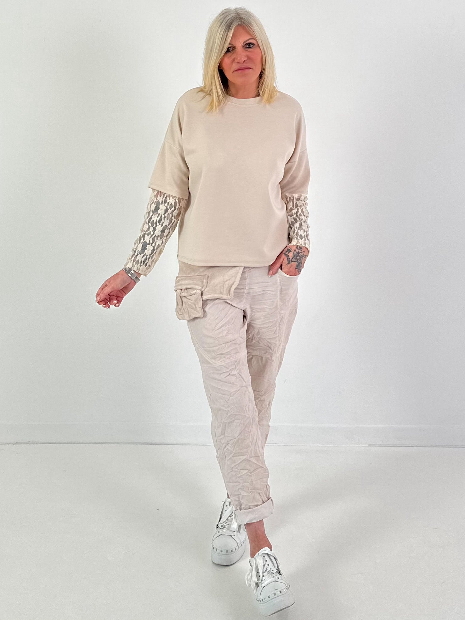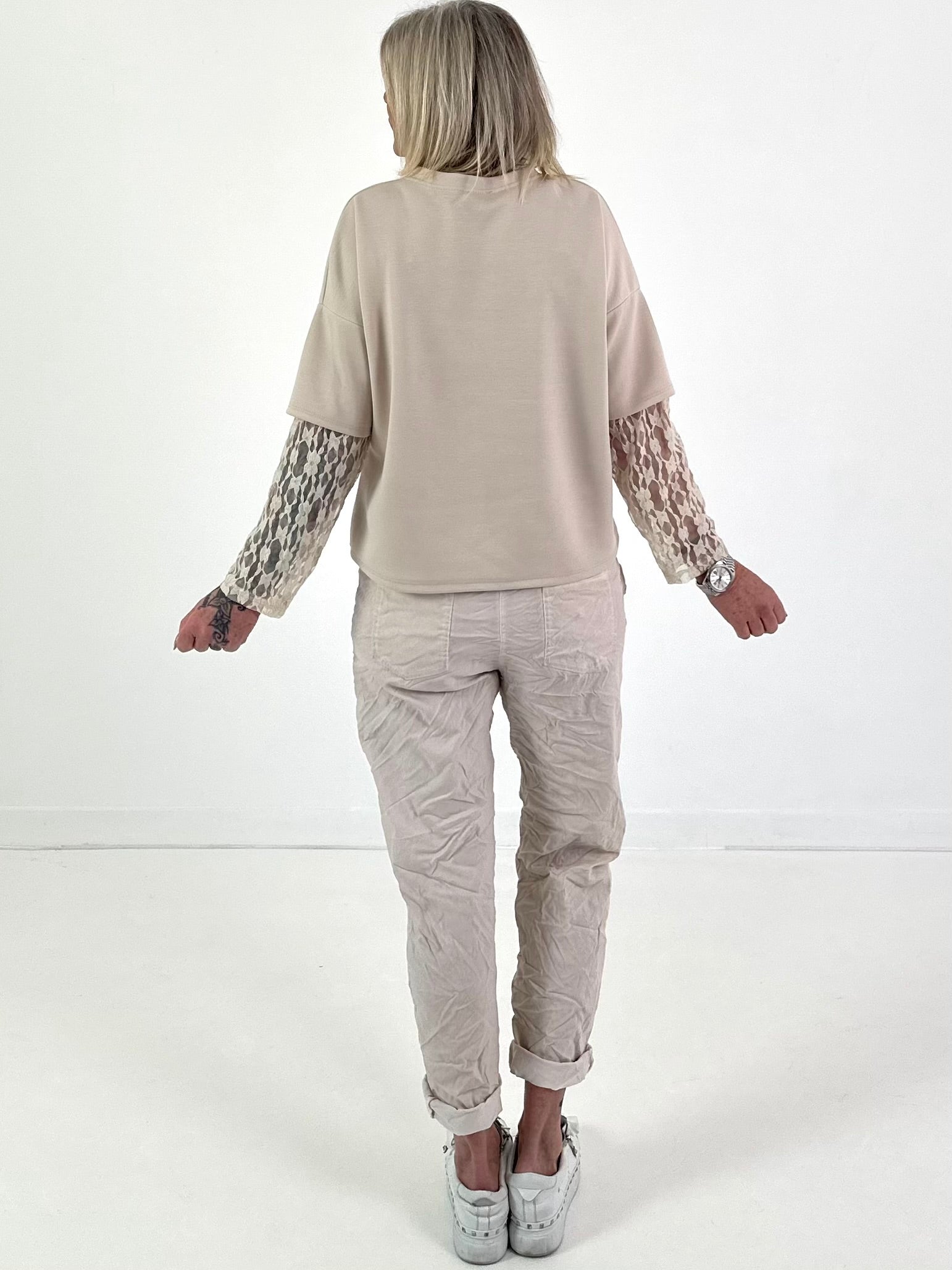 Sweatshirt mit Spitzenarm Modell "Luna" - beige