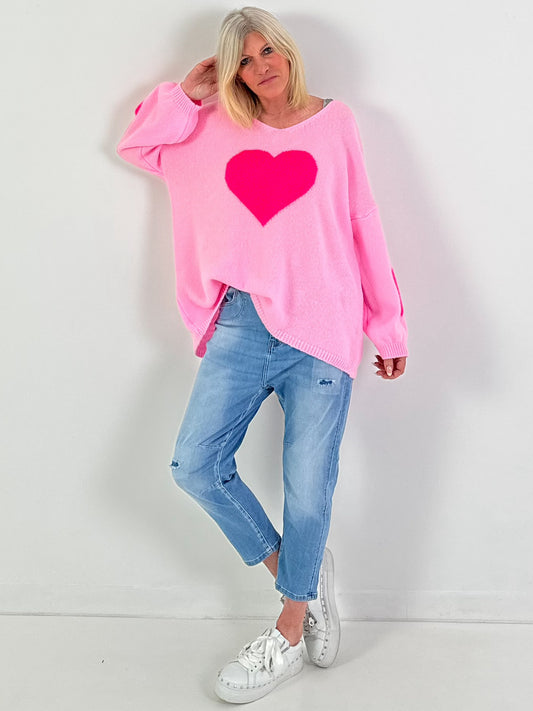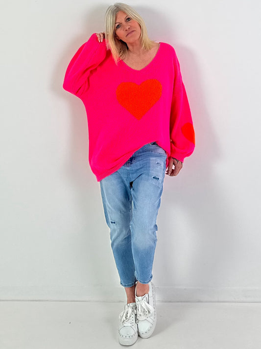 Oversized Pullover Modell "Heart Flair" - neonpink