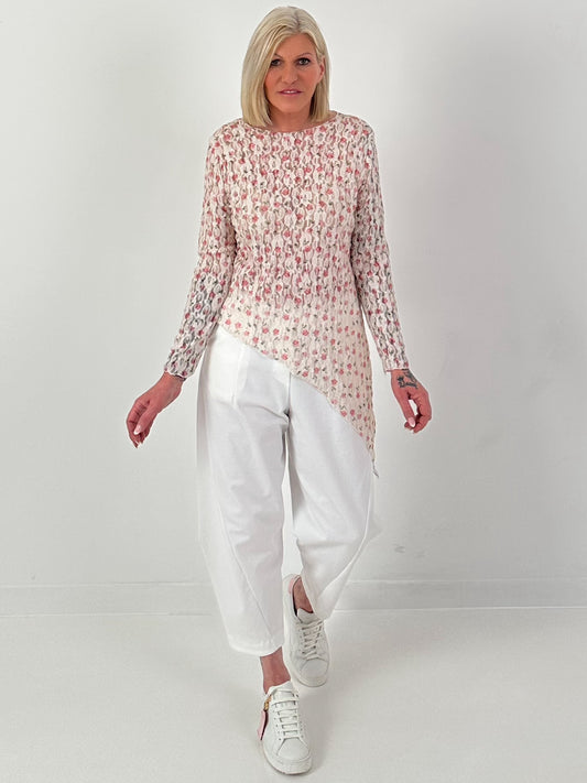 asymmetrisches Spitzenshirt mit Blumen - creme-rosa
