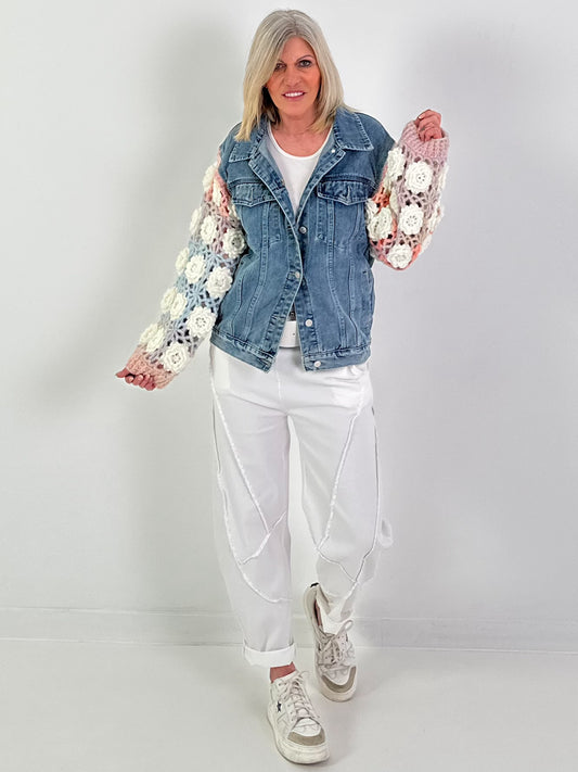 Jeansjacke mit gehäkelten Ärmeln - denim