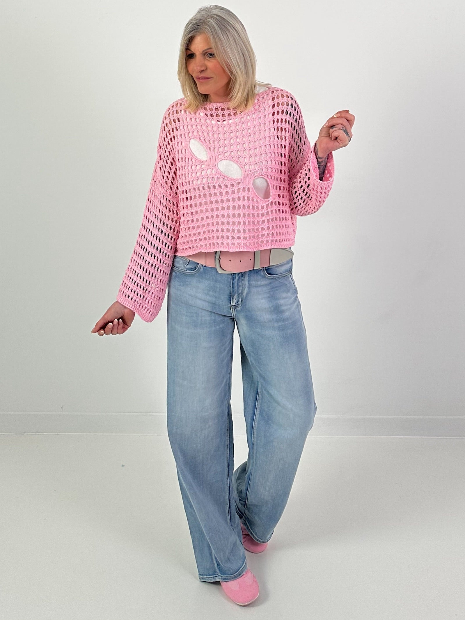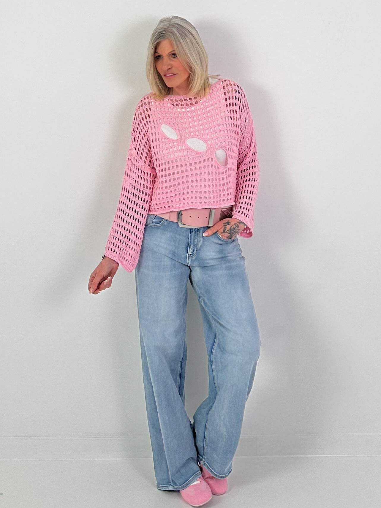 Dieser gehäkelte Pullover überzeugt mit seinem luftigen, trendbewussten Look und ist das perfekte Layering-Piece für stylische Outfits. Das grobmaschige Häkeldesign verleiht dem Pullover eine transparente, sommerliche Leichtigkeit und sorgt für eine locker fallende Silhouette. Der weite Rundhalsausschnitt unterstreicht den entspannten Stil, während die großzügig geschnittenen Fledermausärmel zusätzlichen Komfort und Bewegungsfreiheit bieten. Durch den offenen Look eignet sich der Häkelpullover ideal zum Überziehen über Tops, Bralettes, Bikinis oder Kleider und rundet Freizeit-, Strand- oder Festival-Outfits perfekt ab.