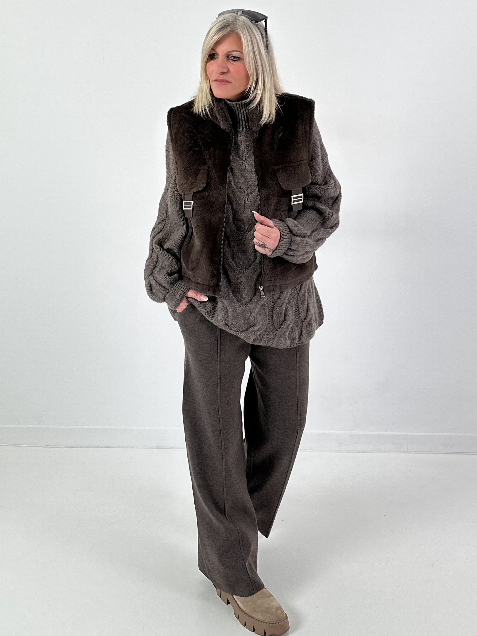 Lässiger Pullover mit Zopfmuster Modell "Pure Cable" - braun