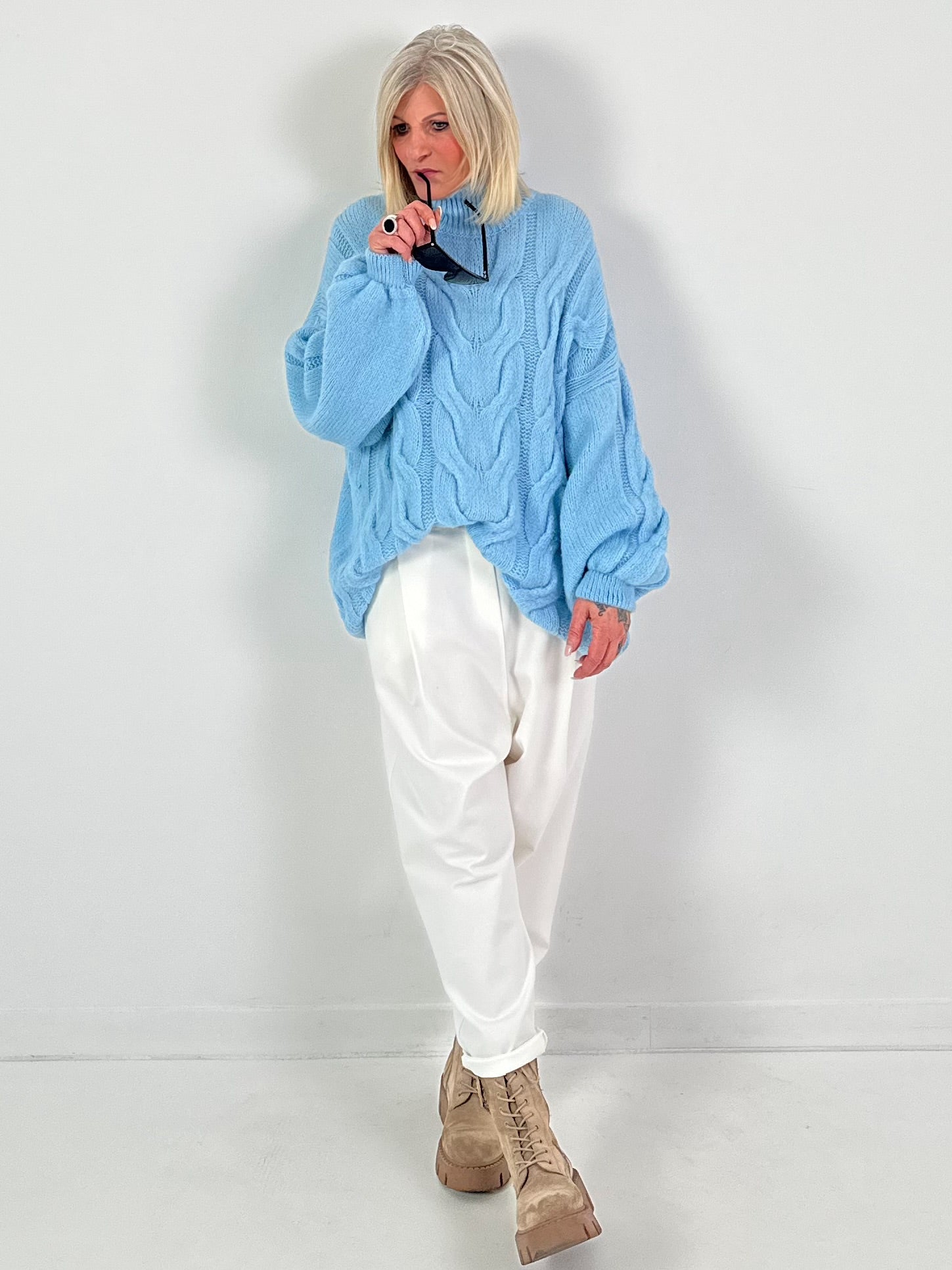 Lässiger Pullover mit Zopfmuster Modell "Pure Cable" - eisblau