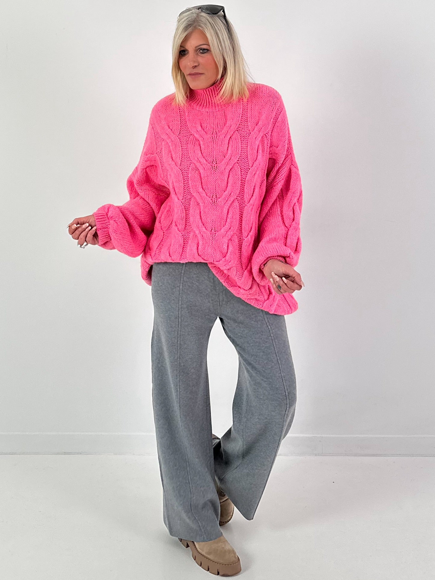 Lässiger Pullover mit Zopfmuster Modell "Pure Cable" - candy