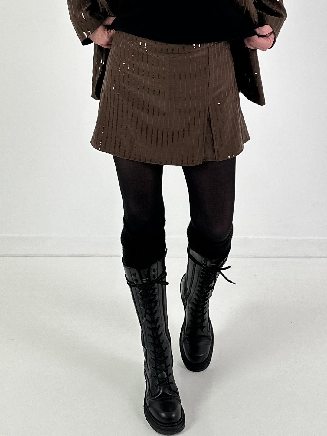 Hosenrock Modell "Midnight Sparkle" - dunkelbraun-braune Pailletten
