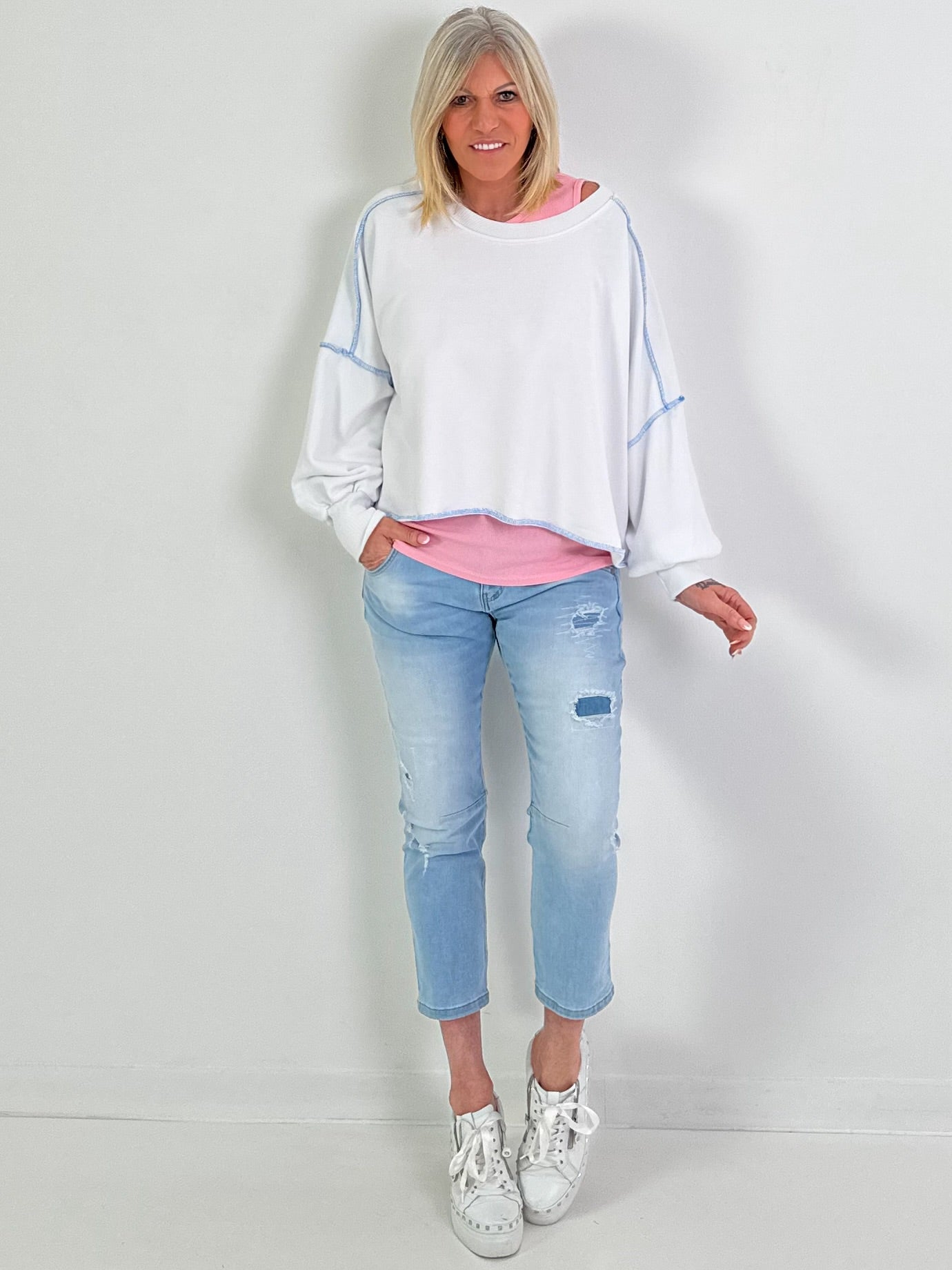 Der klassische Rundhalsausschnitt und die ärmellose Form sorgen für einen cleanen, modernen Look. Dank der schlichten Gestaltung lässt sich das Top vielseitig kombinieren.