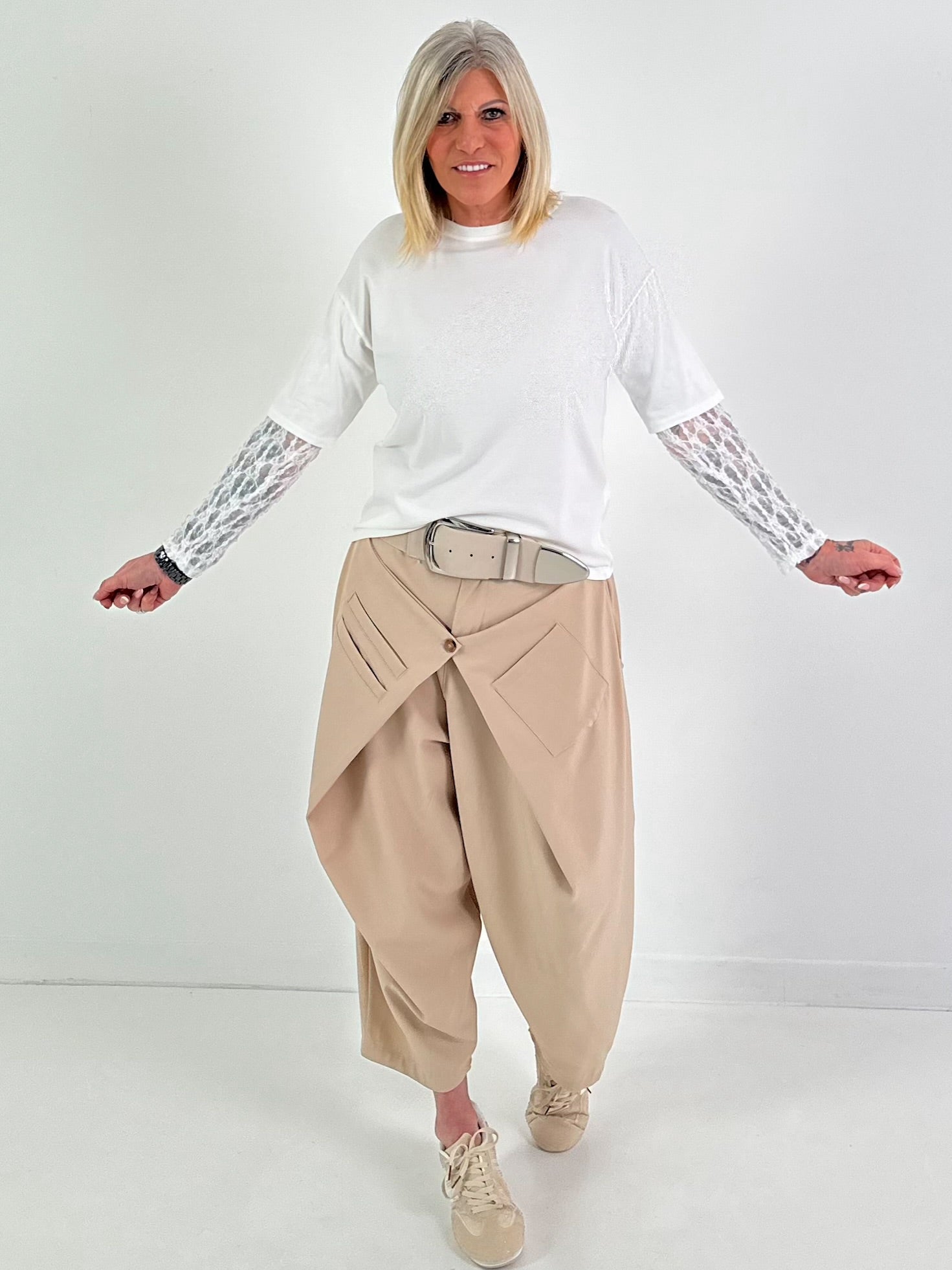 Shirt mit Spitzenärmeln - weiss