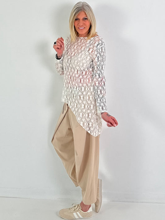 Spitzenshirt mit Muster - creme