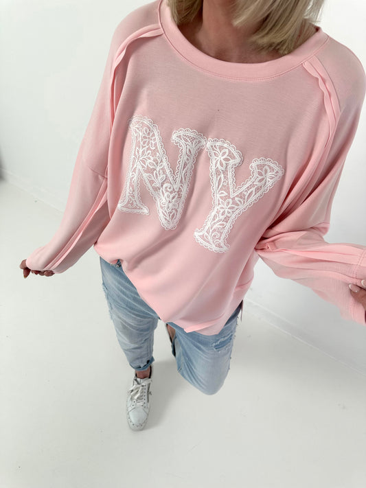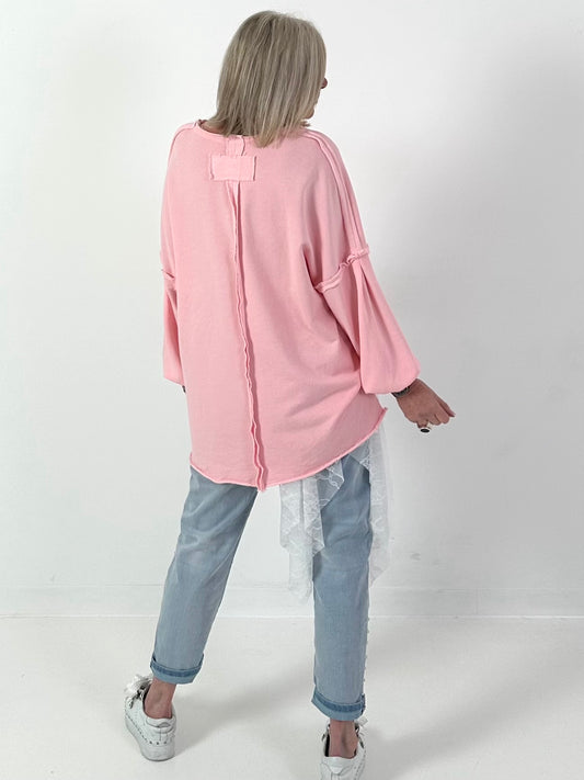 Oversized Sweater mit trendigen Linksnähten - rosa