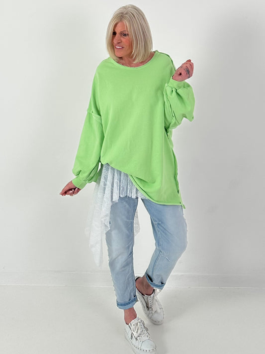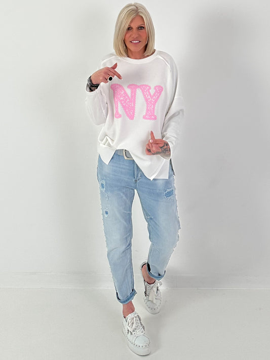 Oversized Sweater mit trendigen Linksnähten - weiss