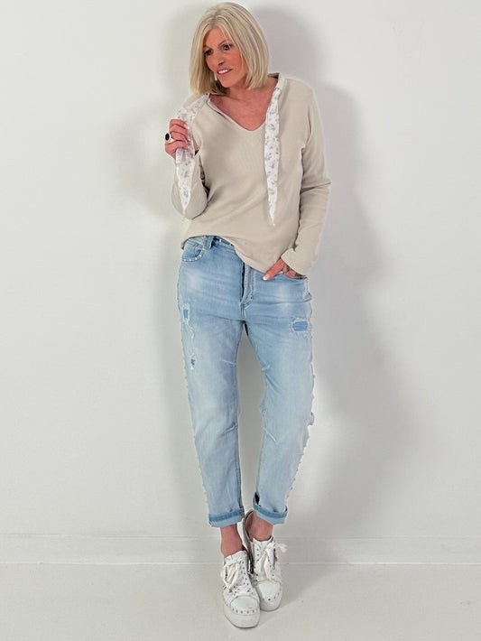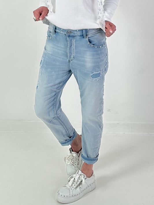 Boyfriend Jeans mit silbernen Nieten - light-denim