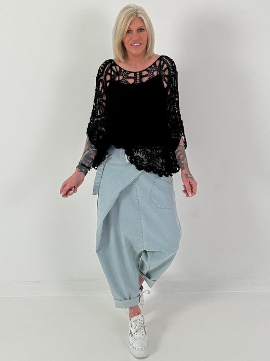 Häkelshirt mit Top - schwarz ( lieferbar ab 06.03.26)