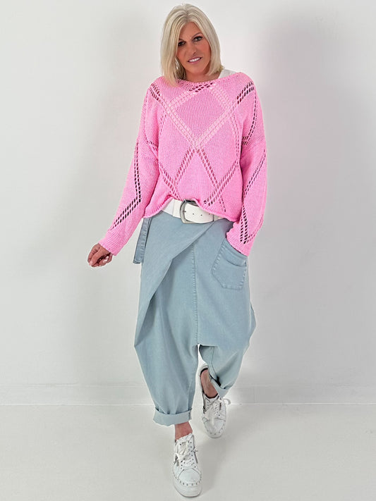 Häkelpulli mit Rautenmuster - rosa