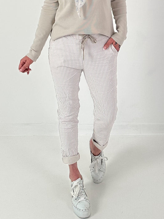 Hose gestreift - beige-weiss