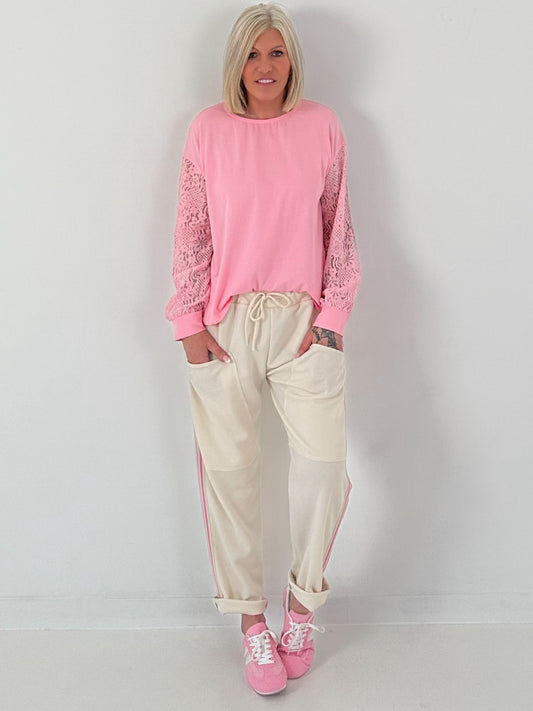 Shirt mit Spitzeneinsätzen - rosa