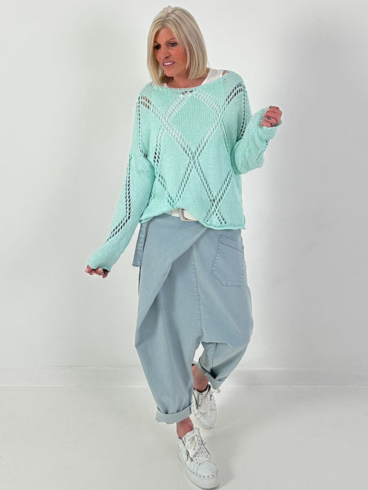 Häkelpulli mit Rautenmuster - mint