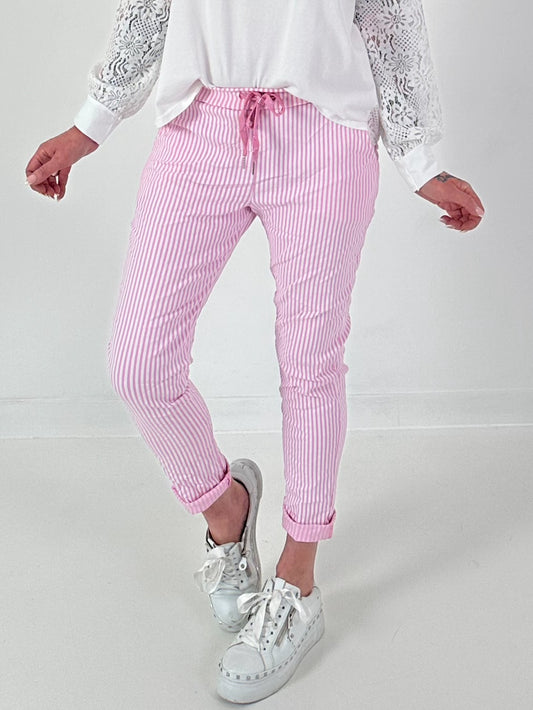 Hose gestreift - rosa-weiss