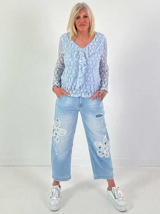 Spitzenbluse Modell "Semple Love" - weiss-hellblau