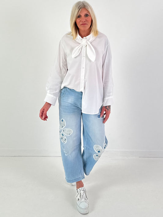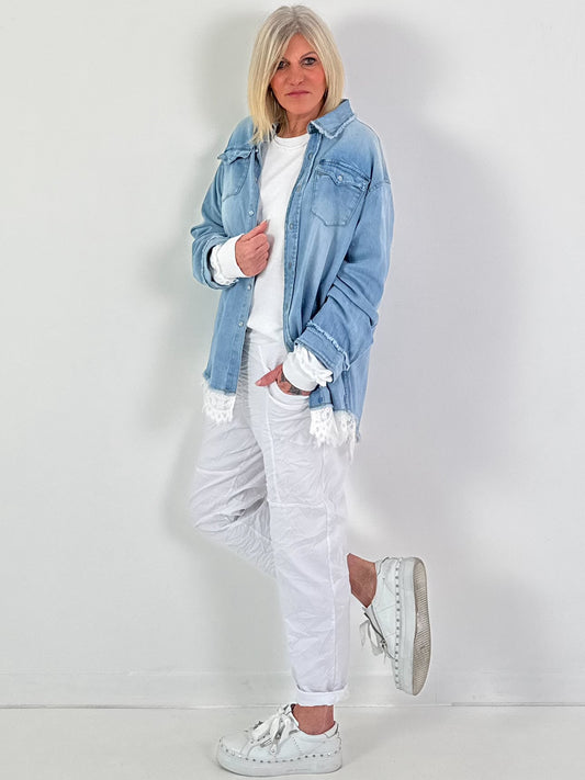 Jeanshemd mit Spitzensaum Modell "Delight" - denim