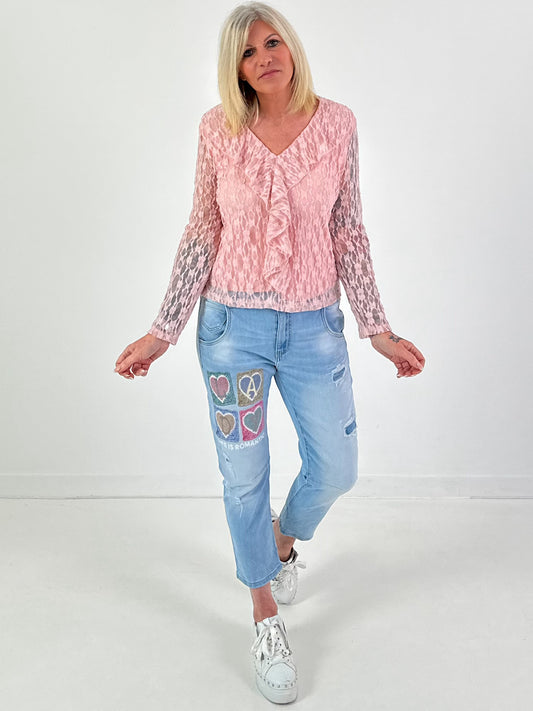 Spitzenbluse Modell "Semple Love" - weiss-rosa
