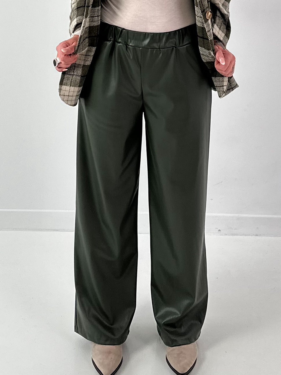 The Smooth Faux trousers combine modern chic with maximum comfort. The matte leather look is sophisticated yet understated, while the wide leg creates a flowing, elegant silhouette.