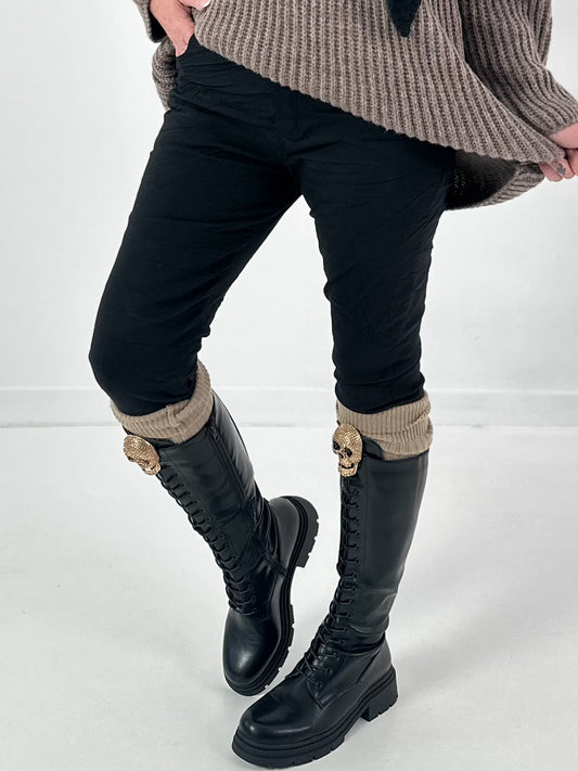 Shorts with overlay and sequins, model "Glam Motion" - black
