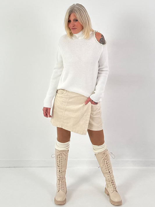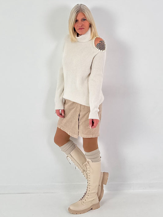 Turtleneck sweater with sequins, model "Time to Shine" - beige