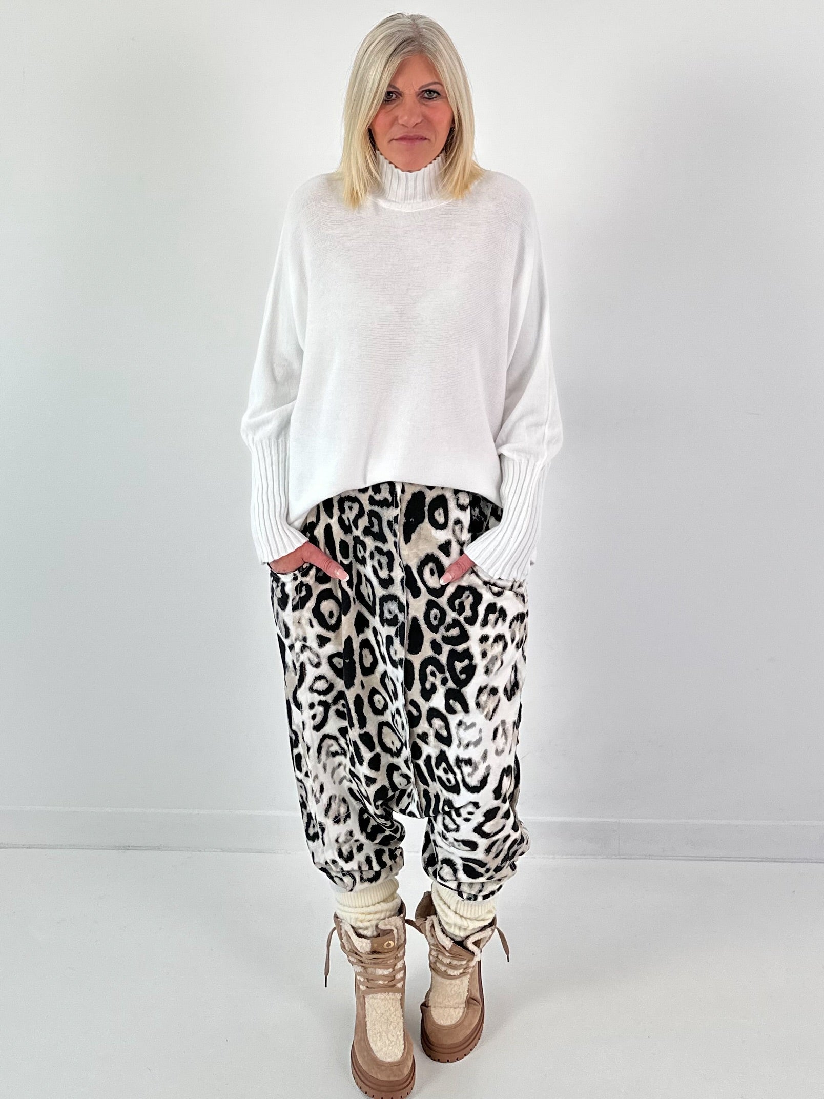 A sweater that redefines serenity. The turtleneck creates a clean, elegant silhouette, while the dropped shoulders and soft fine knit give it a comfortably relaxed feel. Wide ribbed cuffs and collar add structure and style without disrupting the casual silhouette. The drape remains loose, the feel soft – perfect for looks that are understated yet always confident.