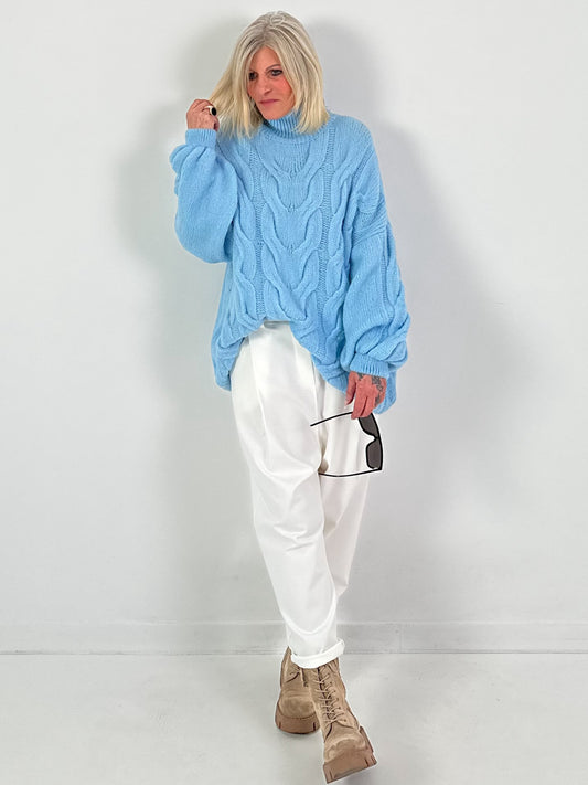 Casual cable-knit sweater, model "Pure Cable" - ice blue